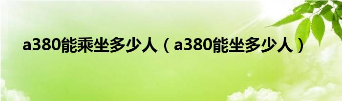 您好,今天帅帅来为大家解答以上的问题。a380能乘坐多少人,a380能坐多少人相信很多小伙伴还不知道,现在让我们一起来看看吧!